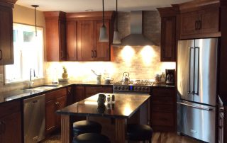 • Enlarged window, added lighting and selected a light natural stone back splash to brighten the accentuate the dark cabinets.