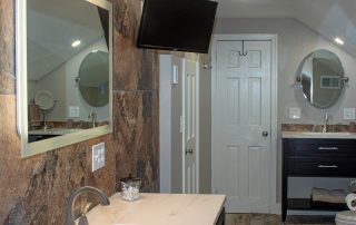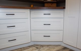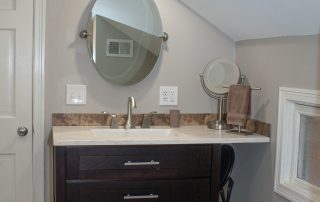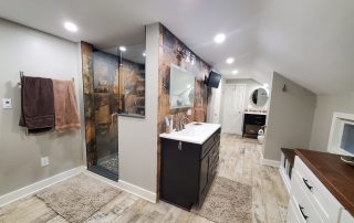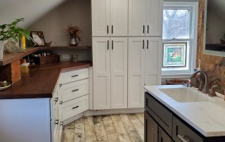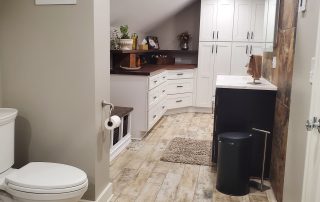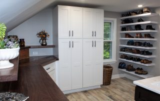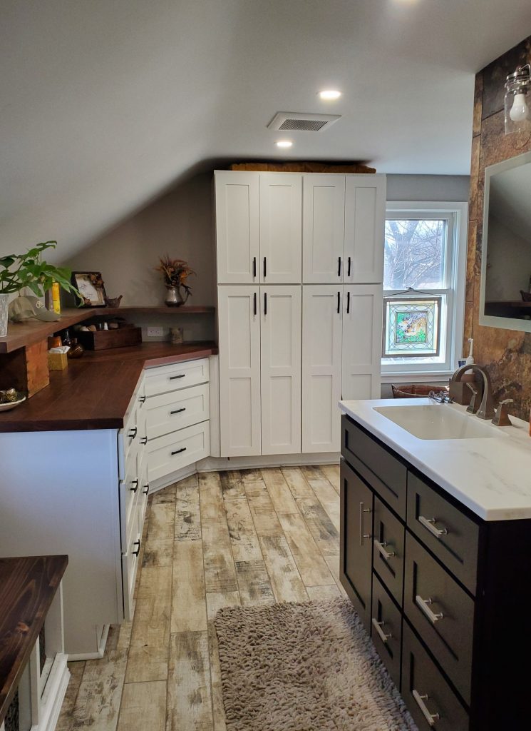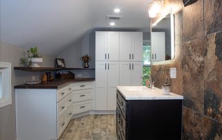 SPACE. We took a very very small farmhouse bathroom and opened it up into the adjoining room for a nice size Master Suite with his and her sinks, an extra large shower plus closet space and shoe racks. We were able to work the pitch of the roof right into the design and provide some additional shelf space.